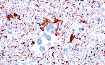 IHC analysis of paraffin-embedded Renca syngeneic tumor using CD206/MRC1 (E6T5J) Rabbit Monoclonal Antibody #24595. |